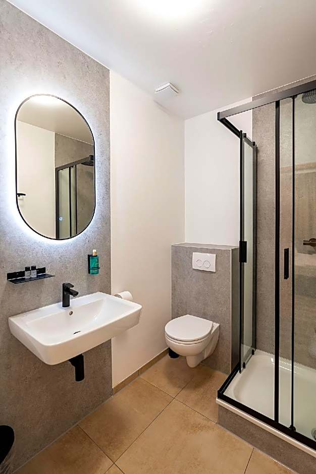A seating area with a flat-screen TV, a desk and a private bathroom are featured in this twin room. The unit offers 2 beds.